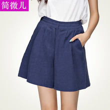 简微儿2016夏季新款 透气亚麻休闲短裤女 高腰棉麻阔腿A字女裤子