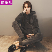 金丝绒套装女加绒加厚天鹅绒运动套装春卫衣时尚2017新款两件套