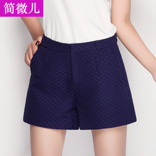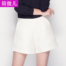简微儿高腰休闲阔腿短裤女款 春夏季2016波纹提花大码显瘦A字裤