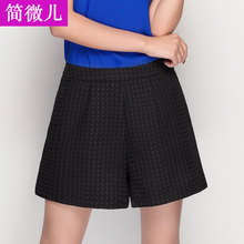 简微儿夏季2016高腰提花阔腿短裤女 休闲宽松大码显瘦热裤裤裙