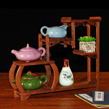 红木紫砂壶茶具架 小博古架 鸡翅木实木架茶壶底座 中式家居饰品