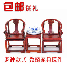 红木雕工艺品礼品微型家具模型缩鸡翅木红酸枝紫檀皇宫圈椅小摆件