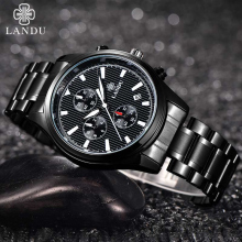 兰度正品男士手表 精钢防水石英男表多功能休闲商务运动钢带腕表