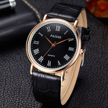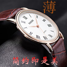 派仕正品男士手表超薄防水时尚潮流皮带男表石英表女表真皮情侣表