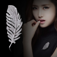 韩国气质水晶羽毛胸针女高档西装胸花简约开衫大别针秋冬大衣配饰