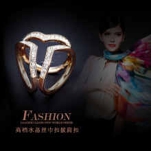 日韩简约丝巾扣披肩扣胸针韩版时尚水晶三环丝巾扣方巾扣胸花饰品