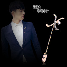 简约西服胸针男时尚一字别针开衫胸花女字母徽章胸章水晶披肩扣