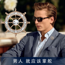复古海军风胸针男西服胸花船舵胸章欧美潮人徽章水晶别针勋章饰品