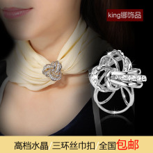 韩版百搭三环丝巾扣气质OL气质丝巾圈水钻花朵丝巾筒披肩扣配饰品