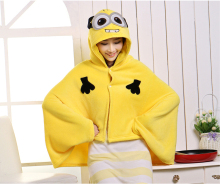 小黄人宅人披肩披风斗篷懒人毯休闲保暖空调毯子公办室午睡午休毯