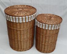 藤编圆形脏衣篓 脏衣篮衣服收纳桶 有盖 大号收纳筐带提手 可定做