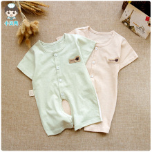 小贝壳有机彩棉婴儿连体衣夏季新生儿衣服宝宝短袖开档爬服0-1岁