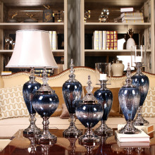 奢华新古典美欧式样板间家居软装饰品深蓝色彩色玻璃摆件台灯套装