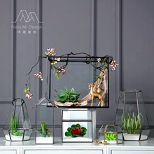 北欧风格几何玻璃罩摆件设玻璃花房咖啡厅客厅家居装饰工艺礼品