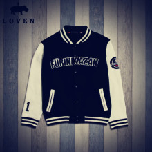 大码开衫卫衣男秋冬季青年字母印花外套夹克拼接棒球服潮牌日系胖