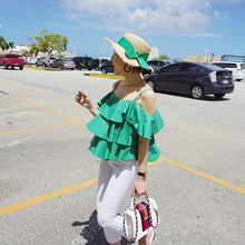 2017夏季新款韩版甜美吊带一字领多层荷叶多层上衣百搭沙滩度假女