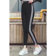 白边打底裤子女春季2017新款潮韩版学生不规则九分黑色小脚裤显瘦