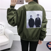 2017春季新款韩版圆领长袖外套宽松BF风棒球服后背人物图案夹克女