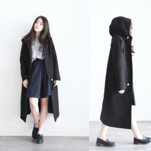 2015韩国代购韩版秋冬新款宽松超长款连帽呢子大衣外套大码女装厚