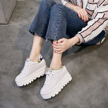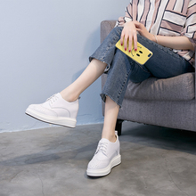内增高小白鞋真皮系带松糕厚底平底韩版白色女鞋运动休闲板鞋女秋