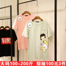 加大码女装200斤胖mm夏装新款2017韩版卡通春季上衣胖妹妹短袖T恤