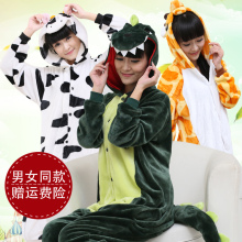 法兰绒卡通恐龙动物连体睡衣女可爱成人情侣家居服男士冬季珊瑚绒