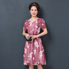 中老年女装夏装雪纺连衣裙女40-50岁薄妈妈装短袖裙子2017新款潮