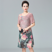 中老年女装夏装真丝连衣裙中年妈妈装中长款桑蚕丝裙子30-40-50岁