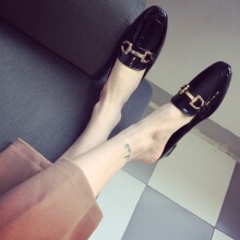2016夏新款韩版漆皮时尚方头金属链单鞋平底鞋小红鞋舒适豆豆鞋女