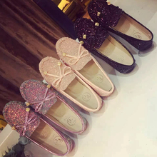 2017春秋豆豆鞋女单鞋包子鞋渐变色休闲鞋蝴蝶结平底鞋亮片女瓢鞋