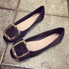 16秋季新款女鞋欧美金属方扣蝴蝶结浅口方头单鞋绸缎面舒适平底鞋