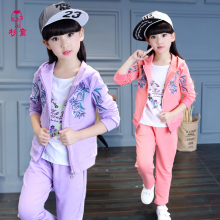 童装女童三件套装春秋款套装儿童运动长袖2017新款女孩中大童卫衣