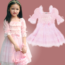 2017夏装蕾丝粉红泡泡袖女童连衣裙儿童公主裙花童裙礼服裙童装胖