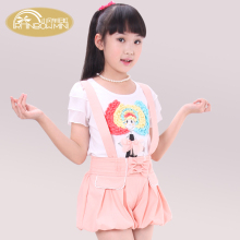 清仓小风车彩虹2017可拆女童背带裤 短裤 大童女装儿童夏装灯笼裤