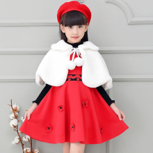 女童毛披肩花童礼服外搭外套春秋冬仿皮草公主裙毛绒儿童披风斗篷