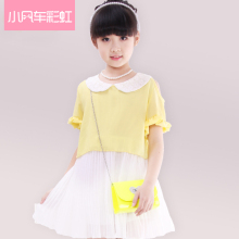 2017蕾丝雪纺百褶女童连衣裙夏装 中大童裙子大码童装儿童雪纺裙