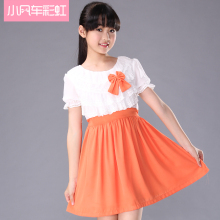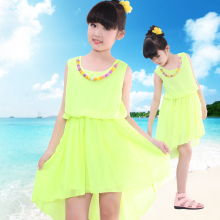 2017夏装前短后长女童雪纺裙 中大童连衣裙儿童公主裙子大码童装