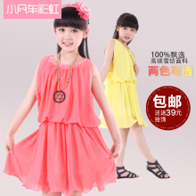 夏装2017女童连衣裙大童女装雪纺裙儿童公主裙大码胖童夏季沙滩裙