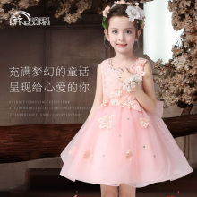 2017夏装小孩公主裙花童礼服裙女童连衣裙儿童宝宝表演出群蓬蓬裙