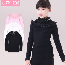 2017春装蕾丝半高领女童打底衫5-8大童打底衣儿童长袖T恤9-12童装