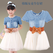 2017夏装新款牛仔网纱女童连衣裙 童装牛仔裙夏季中大童女装儿童