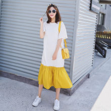 韩版小清新短袖T恤连衣裙女拼接撞色鱼尾裙2017夏宽松显瘦长裙子
