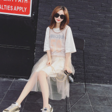 2017夏小清新T恤网纱连衣裙女中长款韩版学生宽松显瘦两件套装裙