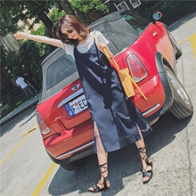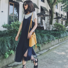2017夏韩版小清新宽松短袖冰丝T恤吊带连衣裙两件套女鱼尾裙长裙