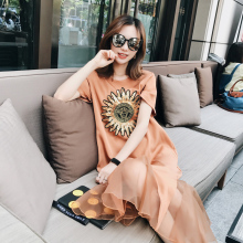 2017夏季新款韩版宽松学生荷叶边鱼尾裙中长款网纱拼接T恤连衣裙