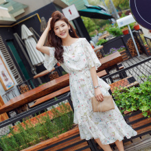 长裙女夏季韩版小清新碎花雪纺连衣裙收腰系带甜美不规则荷叶边裙