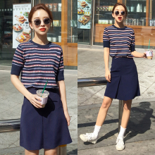 A字裙子套装夏季2017新款女潮韩版T恤上衣短裙半身裙两件套连衣裙
