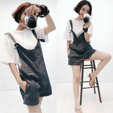 韩国休闲时尚短裤背带裤女2017夏季新款韩版学生宽松百搭学院风潮