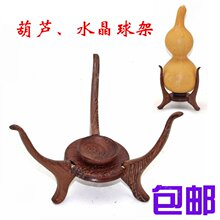 包邮 黑鸡翅木葫芦托水晶球底座摆件托架实木三角葫芦架子 可调节
