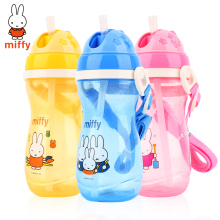 米菲儿童吸管水杯防摔可爱卡通宝宝吸管水杯 夏季带背带防漏水壶